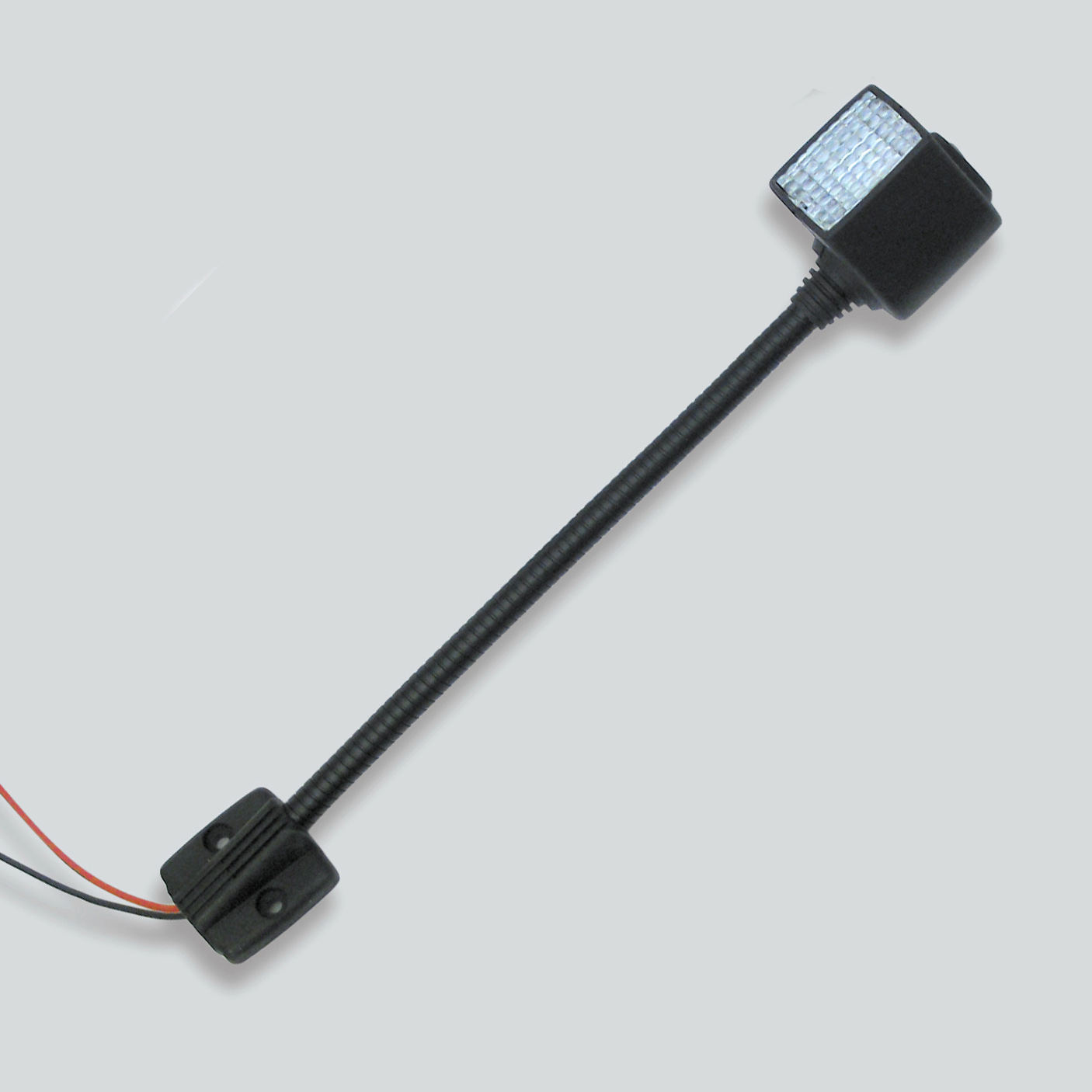 Mit Halogenglühlampe und Schalter. Die Lampe ist stabil und der Schwanenhals hält die eingestellte Form. 29,5 cm lang, Schraubbefestigung