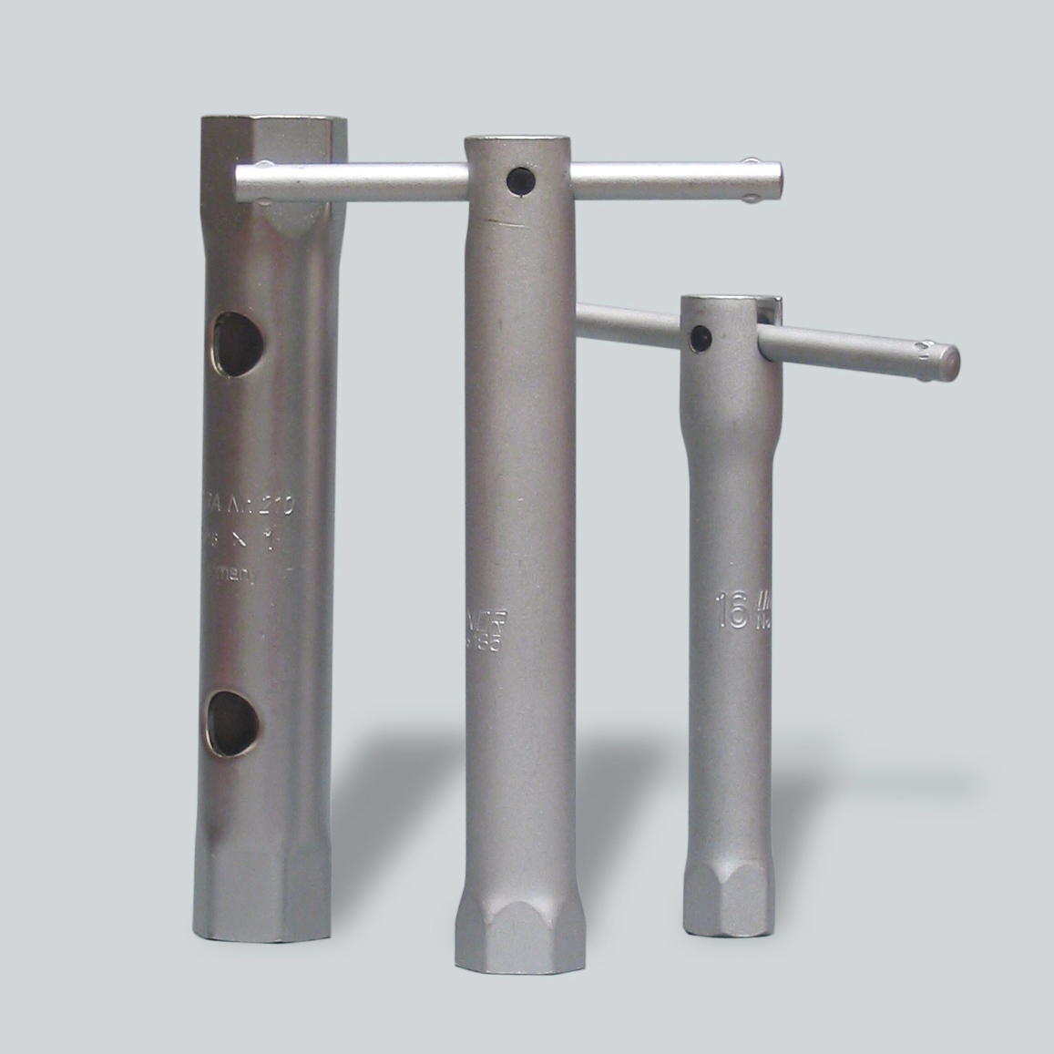 Die häufigste Schlüsselweite bei Zündkerzen im Klassikerbereich von 1950 bis 1980 ist 21 mm (13/16"). Sie paßt auf Zündkerzen mit 14 mm Gewinde. Der Rohrschlüssel ist 18 cm lang.
