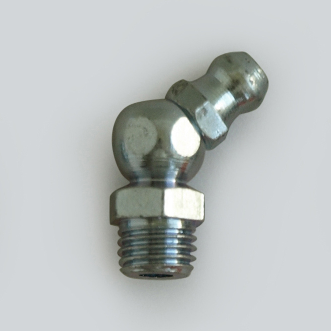 Verzinkter Kegelschmiernippel zum Einschrauben mit Gewinde. 45° abgewinkelt, ein Stück.
