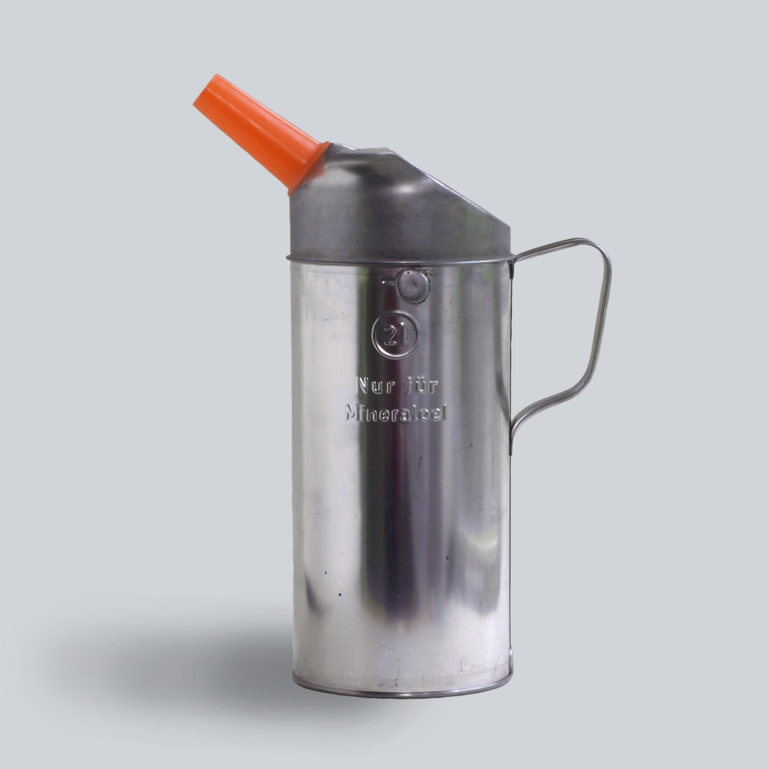 Motoröl nachfüllen ohne zu kleckern ist am einfachsten mit der passenden Kanne. Diese Kanne von Pressol ist aus Weißblech. Die Kanne faßt zwei Liter Öl und hat einen kurzen Auslauf aus Kunststoff.