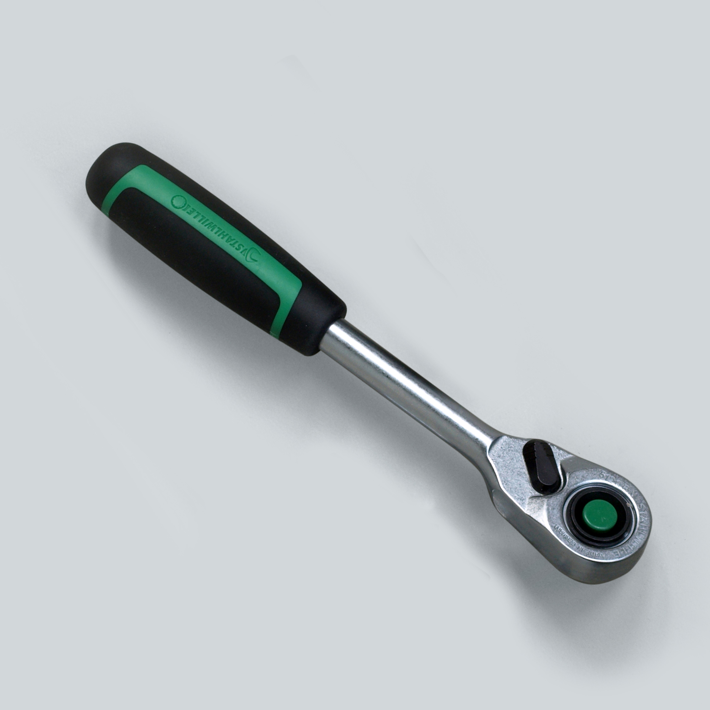 Diese schaltbare Ratsche ist mit 80 Zähnen äußerst fein verzahnt, was in engen Zwischenräumen ein unschätzbarer Vorteil ist. Der Rückschwenkwinkel beträgt nur 4,5º und ermöglicht besonders effizientes Arbeiten.