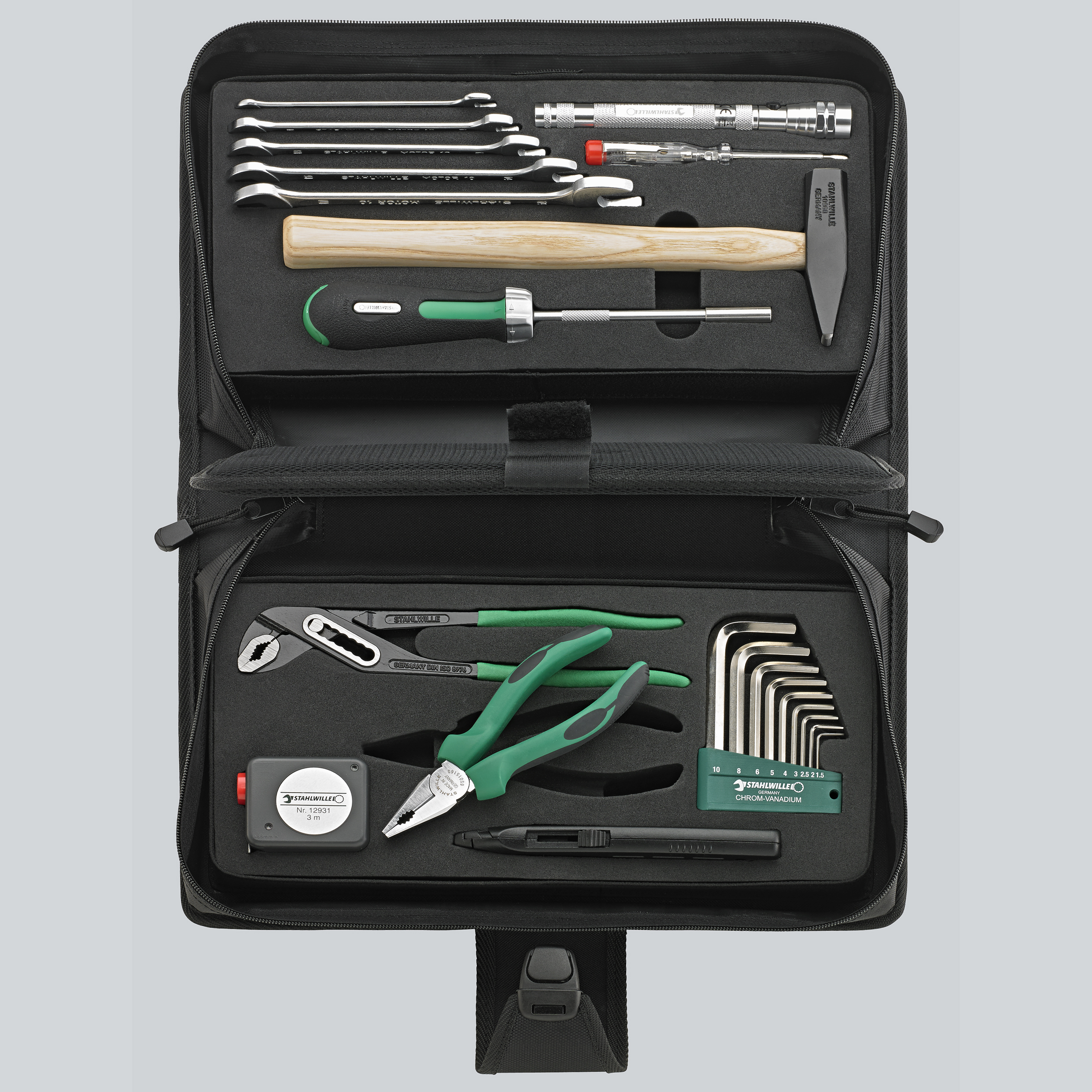 Diese sehr stabile Tasche enthält einen Satz der am häufigsten benötigen Werkzeuge. Werkzeuge liegen zugriffsbereit in Schaumeinlagen; ein stabiler Reißverschluß hält alles sicher zusammen.